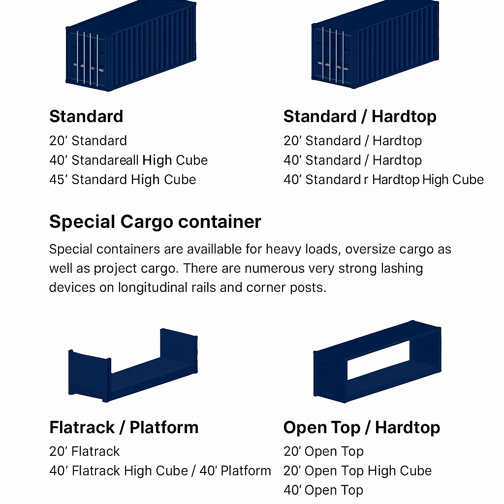 Please note: The specifications supplied here are only meant to serve as an example for containers in Intransia container fleet, as containers vary depending on their particular manufacturer. Should you have special equipment-related requirements for your shipment, we kindly ask you to contact one of our customer service representatives.
